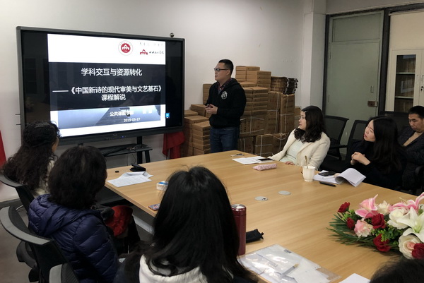 公共课教学部2018—2019学年开设全校通选课共计13门,包括:西方礼仪文化(代增真)、英语写作技巧入门(罗菁)、阅读理解技巧在阅读语篇中的运用(李照)、中国新诗的现代审美与文艺基石(田源)、探秘中国古代的衣与食(俞方洁)、神话与艺术(母润生)、考研英语翻译与写作(肖红)、考研英语阅读(侯海燕)、美与生活(李一萍)、微美术史-大师的秘密(姜影)、雅思英语学习方法(杨晓斌)、考研美术史(周莹)、西方现代艺术思潮(匡景鹏)。13位课程教师分别对各个课程的目标、课程内容、教学方法、教学设计、课程特色和考核方式等作出介绍,同时展示了教学成果,分析了学生的作业作品,交流了教学感悟和对教学的反思。