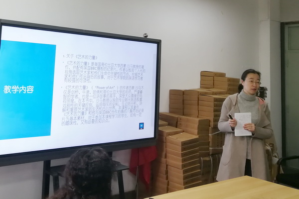 部门两委会成员详细查阅了课程负责人提交的课程验收表、课程大纲、教案、课程建设实施报告、教学案例、学生学习感言、教师教学感悟等验收材料。随后,6位课程负责人结合已提交材料作出报告,重点介绍了课程设计、教学方法和课程建设成效。部门两委会成员针对课程负责人的报告提出问题并展开讨论,如在怎样加强考研美术史、艺术类大学生英语应用文写作、雅思阅读与写作课程的应用性和针对性,怎样对越野行走课程的考核评判标准、各种锻炼机制进行阐释,在如何应对《艺术的力量》选读课程学生英语基础差异等问题上进行了详细讨论并提出建议。