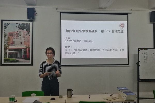 5月18日至19日, 我校在学校就业指导中心开展了第六期大学生创新创业实验班。实验班邀请了就业指导中心杨寒老师担任课程主讲。杨寒深度挖掘了《论语》中理性的世界观、进取的人生观、追求自我完善的道德观,以及和谐的人际关系等优秀思想,将《论语》融入创新创业教育,构建了比较完善的《论语》与大学生创新创业教育融合式的教学体系,并为学员准备了讲义稿,内容包括走好人生每一步、创业者自我修炼、创业团队建设、创业艰难百战多等四个章节。