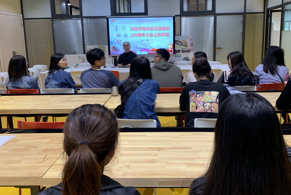 余晖以“学习解读习近平在纪念五四运动100周年大会上的讲话”为题,从“前言、五四运动的重大意义、新时代对青年提出的要求、党对青年工作的重视、对共青团提出的要求”等方面展开宣讲。余晖介绍了五四运动的意义,阐明了五四运动对中华民族的重要影响,着重指出五四精神对于广大青年的指引作用,要求每一位党员认真学习五四精神,坚定理想信念、爱国爱党、勇于担当和奋斗。