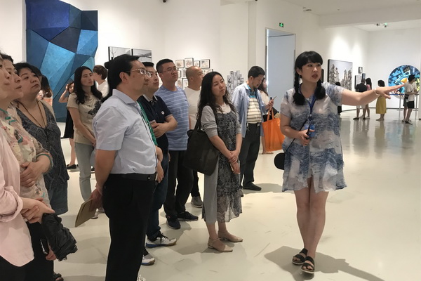 随后,为充分调动艺术院校特色资源,进一步探索和创新“组织联动、资源联用”的机关支部党建新局面,支部开展了题为“贺校庆、共赴艺术盛宴”的主题党日活动。副校长彭林权同志以普通党员身份参加了活动。支部邀请了油画系副教授熊莉钧带领支部同志参观了“开放的六月”毕业作品展。熊莉钧老师对作品创意构思、表现手法、艺术语言的表达等方面向大家介绍了本届毕业生在创作中的探索与尝试。同学们在毕业作品中透露出的敏感现实、思考当下、把握时代文化脉搏的洞察力和力量感,让机关支部的同志们进一步了解到学生的思想动态和情感诉求,为更好地开展教育教学服务工作提供了新思路。
