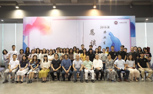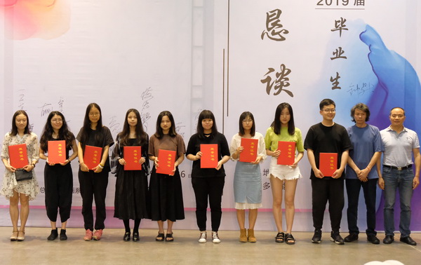 6月26日下午四点,中国画系在学校多功能厅举行了2019届毕业生师生恳谈会及离校教育活动。全系教职工和毕业生齐聚一堂,畅言离别之情,寄托祝福之意,共叙本科生四年、研究生三年的师生情谊、同窗情谊。活动现场布置了留言板、签名墙等。
