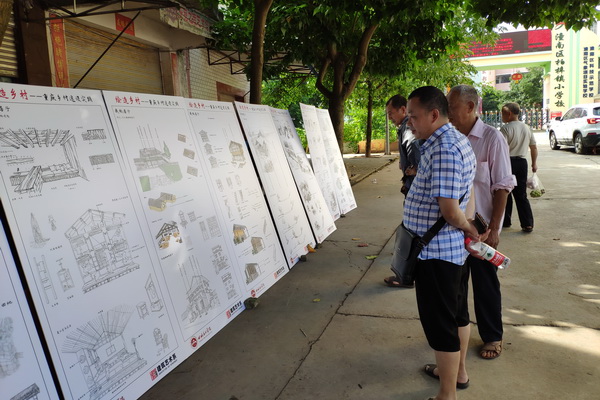 第二天一早,社会实践团在柏梓镇街道和镇上的柠檬广场布置了“绘造乡村——重庆民宿民居改造实践”建筑景观设计展,同学们为参观的居民进行详细的讲解和提出了可落实的建议,为当地建设美丽乡村提供了可操作性强的设计方案。
