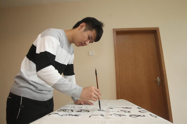 程功,男,1998年2月出生,共青团员,浙江省衢州市人.就读于四川美术学院2017级中国画系书法专业,他自幼失聪,一级听力残疾,一级语言残疾。但他自强不息,三岁时就已经独自远离父母,到杭州一家封闭式语训中心学说话。7岁开始勤学书法,炎暑寒冬从不停歇,在课堂上靠着板书和盯着老师的口形来学习课程。课后,别人玩时他学习,别人睡觉时他还在学习,耳朵听不到,他就用眼睛看,用心想;别人听一听就会,他就用一小时,两小时,还获得了第九届宋庆龄奖学金。在书法上一坚持就是十几年,写秃了上百支毛笔,经常为了写好一个字,一幅作品练到深夜,手冻裂过,脚站肿过,但从来没想过放弃。功夫不负有心人,参加教育部主办的首届全国大中小学生规范汉字书写大赛现场总决赛荣获全国一等奖,此次大赛全国参赛学生近1000万,通过层层选拔,最终胜出;并于12岁时代表中国去日本参加”中日友好书法交流”活动;参加全国兰亭杯残疾人书法大赛荣获一等奖,全国仅5名,成为历届年龄最小的获奖者,作品被国家残疾人美术馆永久收藏。作品曾在人民大会堂展出,获得了河南书法家协会主办的墨舞神州,墨舞中原,墨舞海南连续三届一等奖,并获得了张海奖学金。湖南省书法家协会举办的全国欧阳询杯高中生第一名,上海书法家协会主办的全国第一届,第二届言子杯获得最高奖,提名。2016年参加了山东省书法家协会主办的全国书圣书法大展;同年书法作品入选”沙孟海奖”第九届全浙书法大展;等等。共参加全国最高奖10余次、省级10余次。每年春节前夕都随老师同学们参加”送春联下乡”活动,获得当地老百姓的好评。2017年以浙江省书法专业第二的成绩考取了四川美术学院书法专业,开始了大学生涯的刻苦学习。