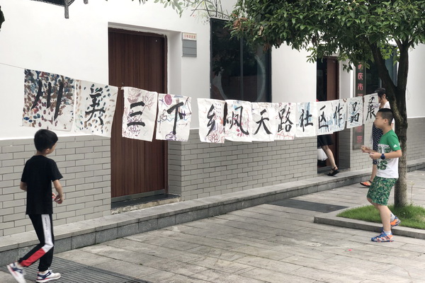 在烈日之下,在凤天路社区便民服务中心的小楼前,志愿者们和高高举起青涩涂鸦的孩子们,在镜头前记录下了这美好的一瞬间。至此,四川美术学院美术学系2019年暑期三下乡社会实践圆满落幕。