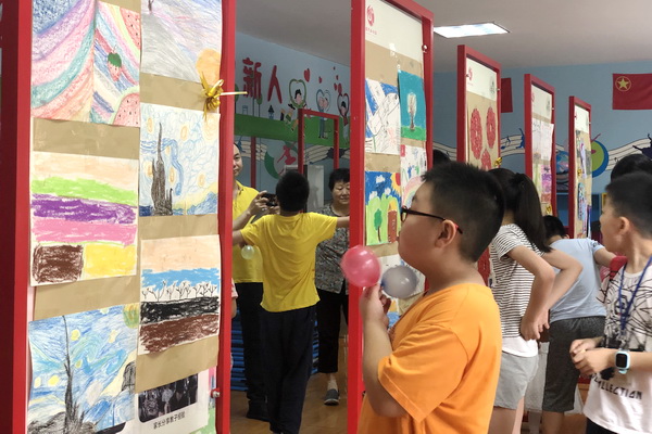 7月19日上午举行了此次社会实践活动作品的展示和联欢活动。同学们用心装点布置活动现场,孩子们收获了艺术带来的欢乐,通过团结协作也收获了成长。教室里一片欢声笑语。