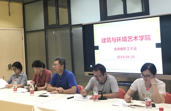 8月30日下午3点,建筑与环境艺术学院全体教职工济济一堂,共谋新发展,绘制新蓝图。学校党委书记黄政出席会议并作重要讲话。会议由建环学院院长黄耘主持。