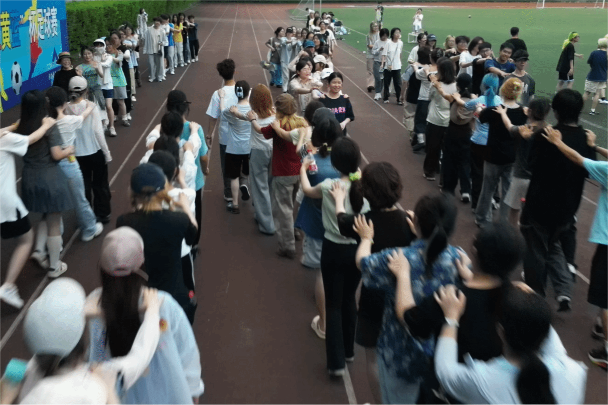团体辅导活动主要包括“能量圈”和“花开花落”形式的放松身心、“花样握手+学业成功小故事”形式的学业赋能等环节,引导同学们分享学业成功经历、克服难题的应对策略,同学们在活动中领悟到坚持与团结协作的重要性。活动最后,7个专业组成了7列火车,在操场上欢快地穿梭、相遇、相知,欢声笑语回荡在操场的每一个角落。“操场火车穿行”为本次活动画上了圆满的句号。