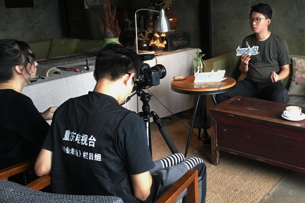 9月19日,重庆电视台《创业者说》栏目到我校微企园采访创业大学生。重庆大西瓜文化传媒有限公司负责人高勇、重庆琼璃艺术发展有限公司负责杨贤接受采访。