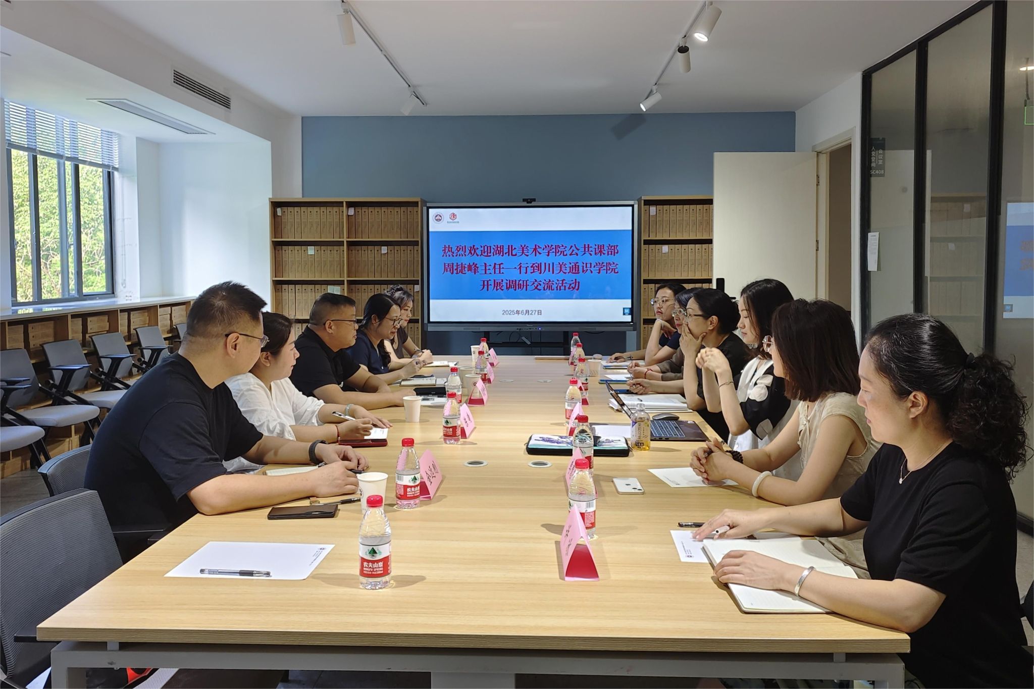 6月27日,湖北美术学院公共课部主任兼党总支书记周捷峰一行5人来我校通识学院交流调研,通识学院院长赵春华、各教学部负责人及通识学院党支部和办公室教师代表参加交流座谈。此次调研旨在共同探讨艺术院校公共通识课程改革与建设,提高公共通识课程教育教学水平,促进兄弟院校之间的沟通交流。