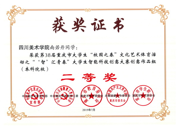 我校团委组织学生参加了多项比赛,斩获多个奖项。在“放歌新时代”大学生校园原创歌曲大赛中获校园创意原创歌曲奖;在“‘智’汇青春”大学生智能科技创意大赛中,创意作品组本科组获两个二等奖,高校团干部岗位实践能力大比武获优秀奖;吴倩老师获得“放歌新时代”大学生校园原创歌曲大赛校园创意原创歌曲优秀指导老师称号、蒋金辰老师获得“‘智’汇青春”大学生智能科技创意大赛优秀指导教师称号。