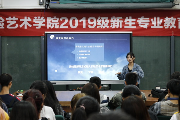 为了使2019级新生尽快适应专业学习生活,找准学习方向, 10月16日下午,实验艺术学院新老生沟通交流分享会在ZD308会议室举行。