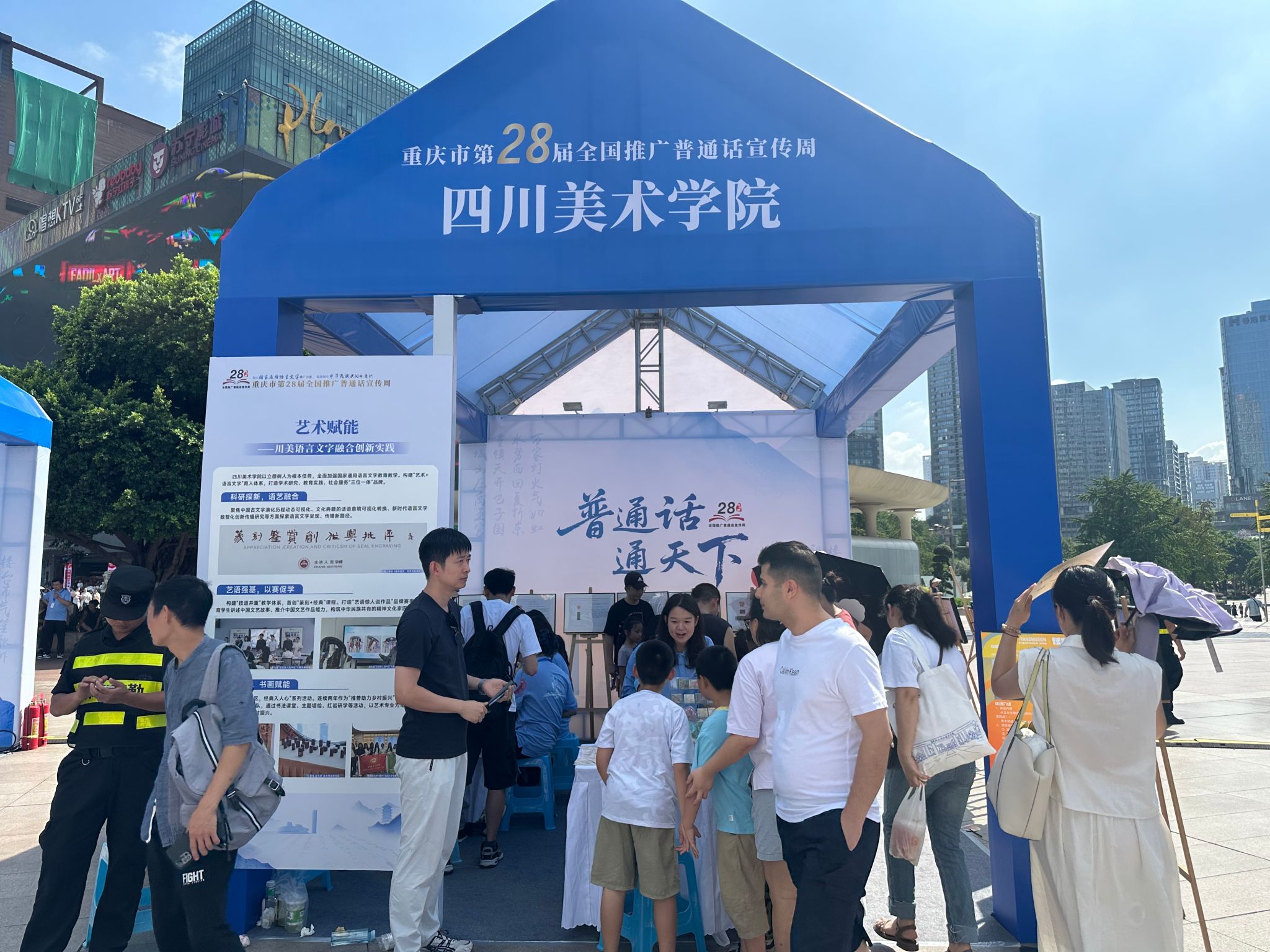 本届活动以“加大国家通用语言文字推广力度,促进铸牢中华民族共同体意识”为主题,我校布置展位参展,对学校在语言文字工作方面的特色与成果进行了集中展示。在现场,学校中国画与书法艺术学院师生还以书法、篆刻为载体,设置了金石传拓、篆刻体验、书法体验及红岩作品展示四个区域,吸引大量观众驻足互动。
