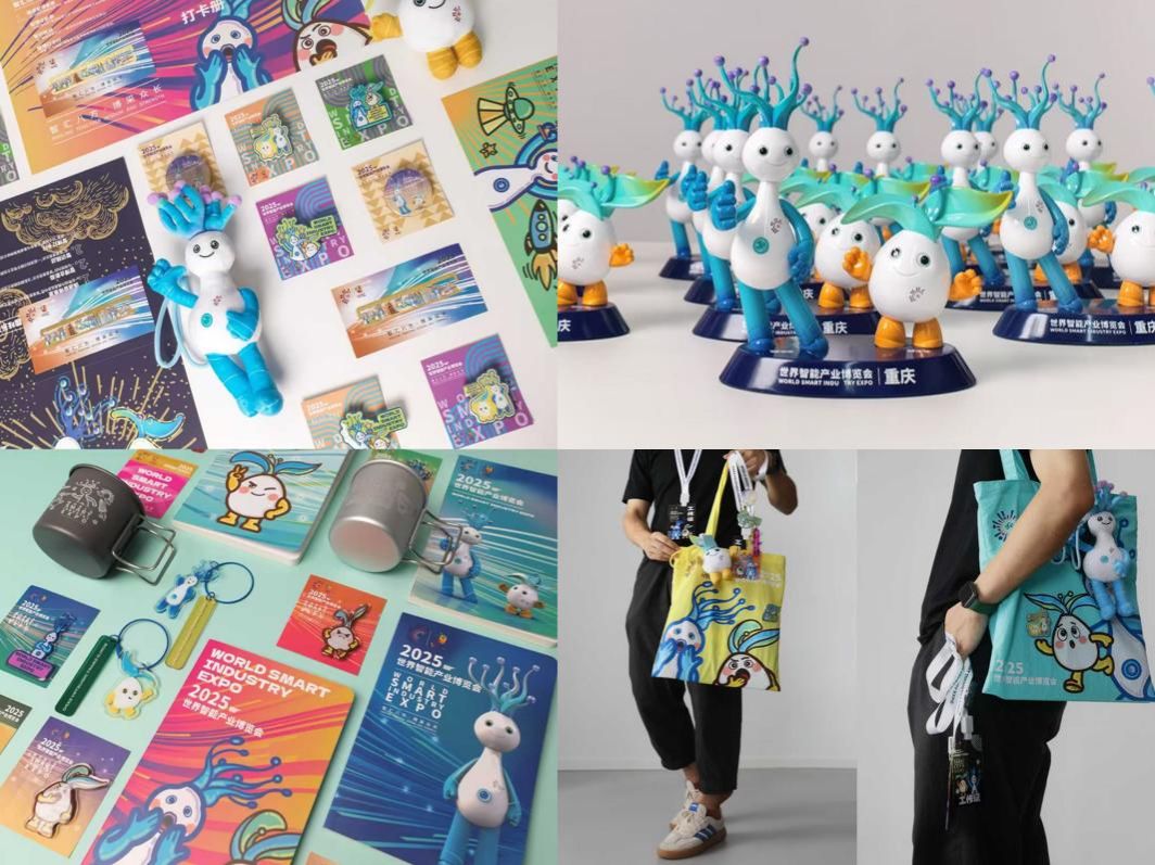 为了让科技IP走进大众生活,团队同步设计了系列文创产品,内容涵盖日常实用品、收藏纪念物等多个品类,兼顾实用性与科技美学;组织开展多场文创宣传推广活动,走进重庆科技馆、重庆动物园、中国三峡博物馆、解放碑国泰优选城市广场等,进一步提升智博会的公众参与度,深化科技科普与文化交流。
