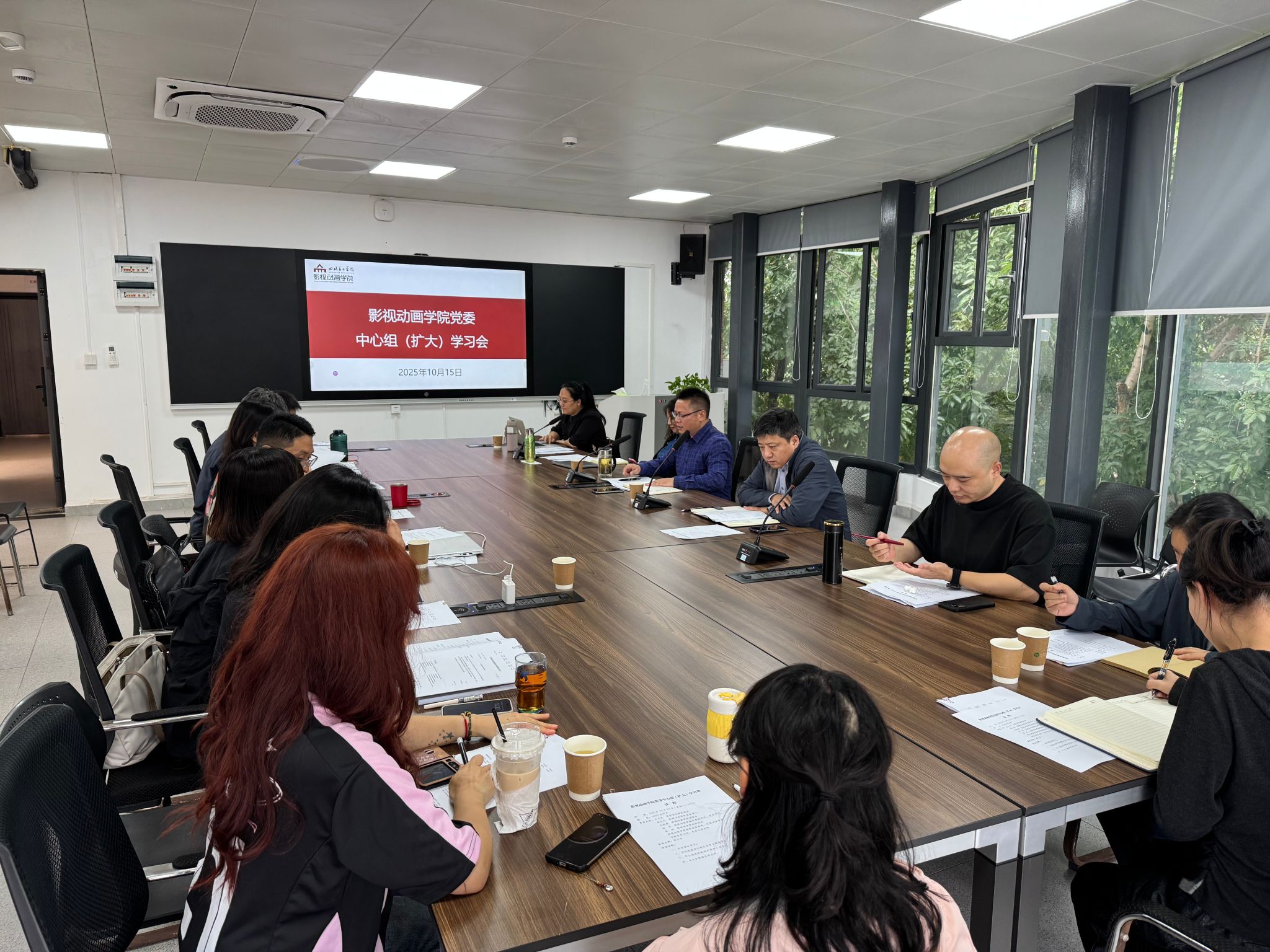 10月15日下午,影视动画学院召开党委理论学习中心组(扩大)学习会,学院领导班子成员、学院“两委”委员、系主任、办公室主任参加会议,学院党委书记郭小兵主持学习会。学校党委宣传部列席旁听工作组到会指导。