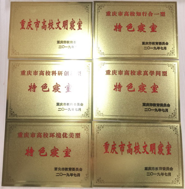 根据《重庆市教育委员会关于2019年普通高校文明公寓和文明寝室评选结果的通知》,经各高校自评、申报和市教委评审,评选出全市高校36个公寓为“重庆市高校文明公寓”;37个寝室为“重庆市高校环境优美型特色寝室”;40个寝室为“重庆市高校求真学问型特色寝室”;21个寝室为“重庆市高校党员示范型特色寝室”;40个寝室为“重庆市高校知行合一型特色寝室”;34个寝室为“重庆市高校科研创新型特色寝室”;650个寝室为“重庆市高校文明寝室”。