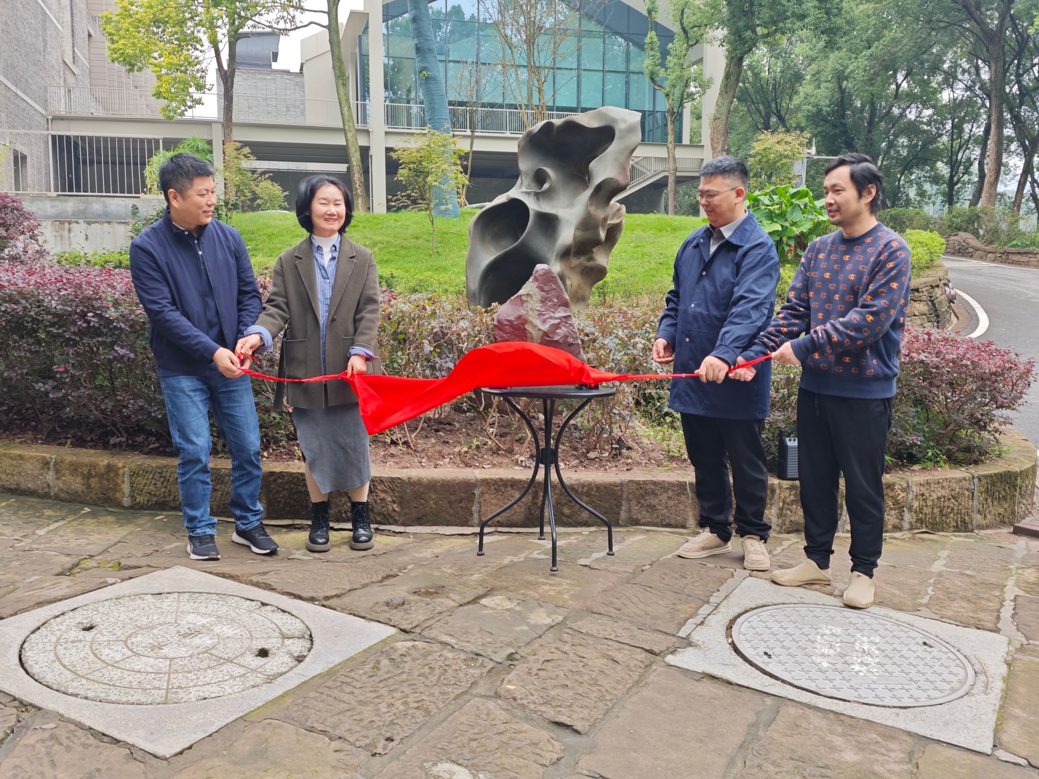 会议向广西校友会会长董劲林、宁夏校友会学术顾问郭玮颁发捐赠证书,与会人员共同为景观石揭幕。会议指出,本次捐赠不仅为学校增添了珍贵的自然艺术资源,也充分展现了校友心系母校、反哺故园的深厚情谊。摩尔石与贺兰石的入藏,是自然与艺术的交汇,也是文化传承与情感汇聚的生动体现。学校将以此为契机,进一步加强与地方文化机构及校友会的交流合作,推动资源共享、合作育人,为培养具有艺术理想与时代担当的青年人才注入更为持久的力量。