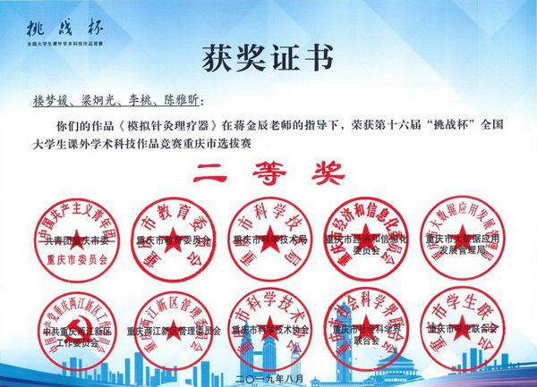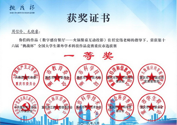 第十六届“挑战杯”全国大学生课外学术科技作品赛重庆市选拔赛获奖名单