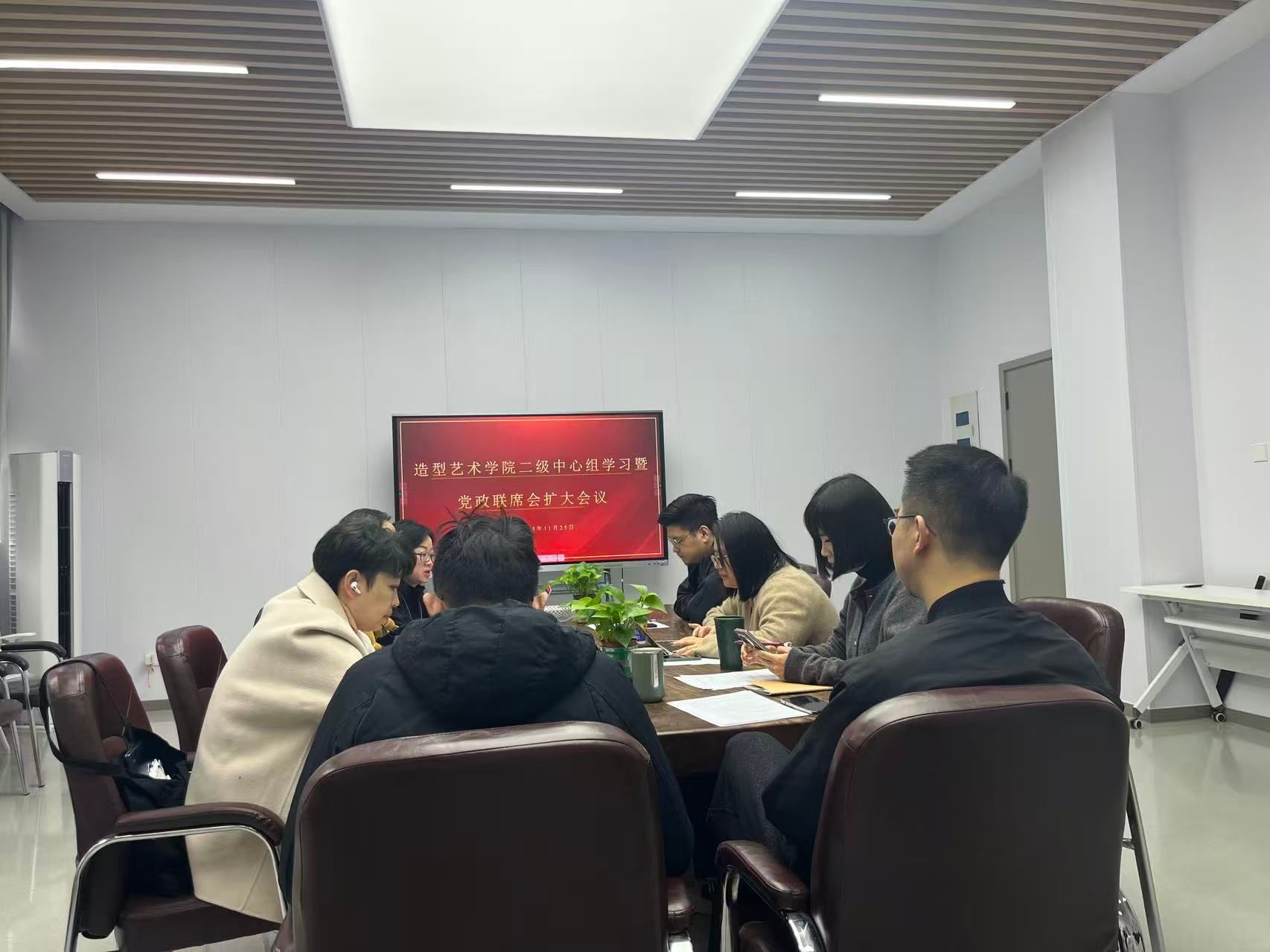 11月25日,造型艺术学院党委召开理论学习中心组(扩大)学习会。学院党政领导班子、“两委”委员、教师党支部书记、系主任等参加会议。会议由学院党委书记韦芳主持。