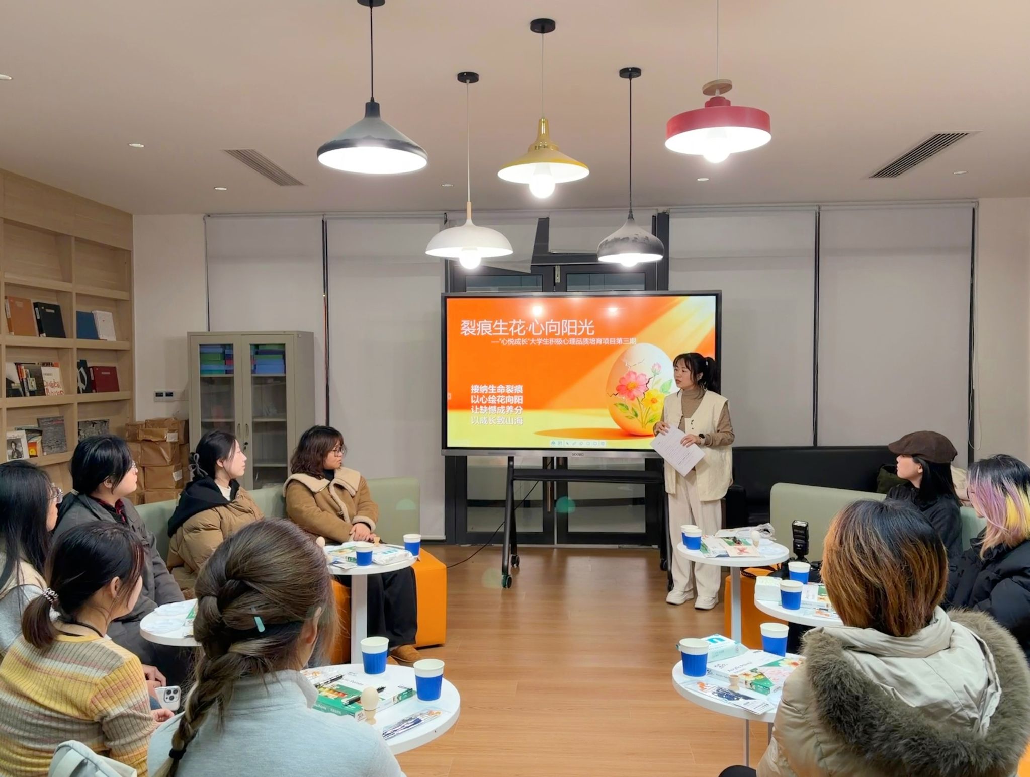 活动尾声,项目导师与同学们展开一对一交流,在共情倾听与真诚支持中细致剖析每个人的“生命裂痕”,为大家精准赋能。“接纳生命裂痕,以心绘花向阳,让缺憾成养分,以成长致山海”,现场师生共同期许,愿这份感悟常伴同学们左右,指引大家接纳不完美,心向阳光笃定前行。