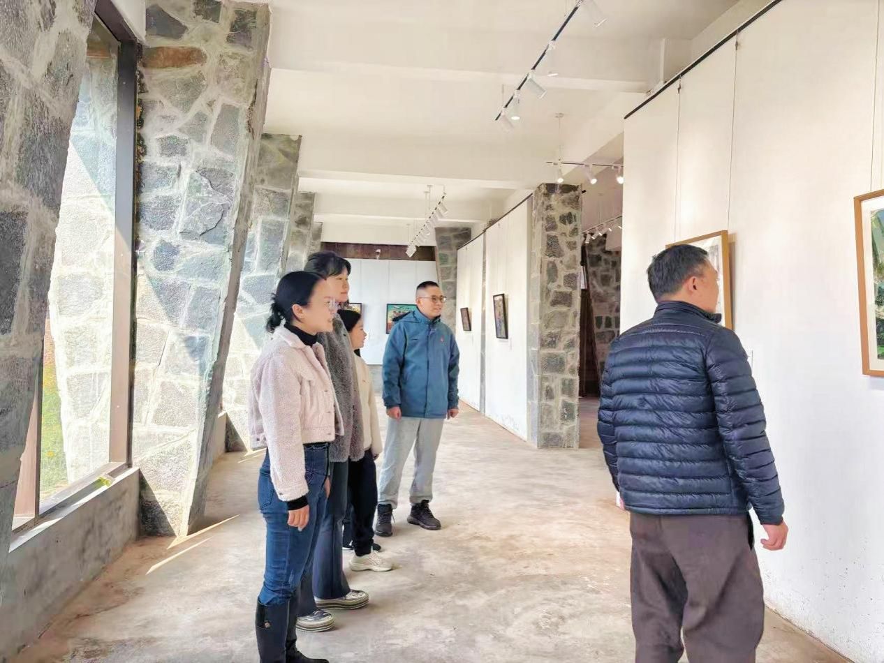随后,党员一行前往重庆市璧山区七塘七彩美术馆,实地调研“第十四届中国艺术节全国优秀美术作品、书法篆刻作品文献展”落地乡村的实践情况,深入了解展览“艺术普惠”理念在基层的呈现方式与影响,并就地组织学习,交流在“进社区 进校园 进乡村”的巡展主题下,艺术展览如何扎根广袤乡野,滋养民众的心灵土壤,为文化强国建设播撒沃土、夯实根基。