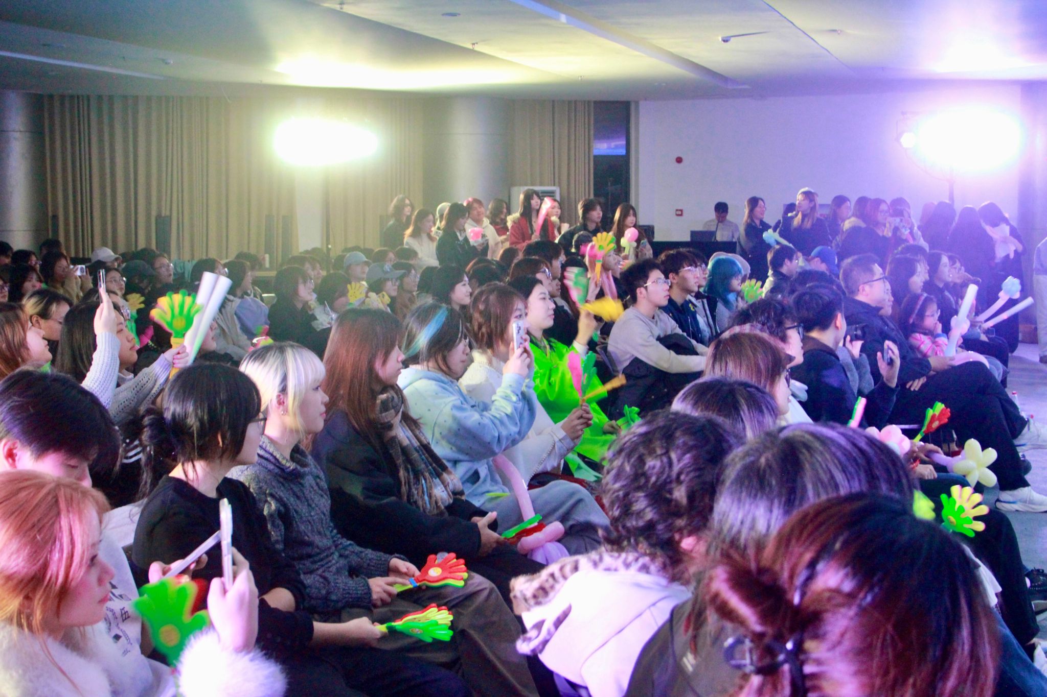 中场设置“听歌识曲”“抱团取暖”等互动游戏,进一步拉近了师生距离,欢声笑语萦绕全场。