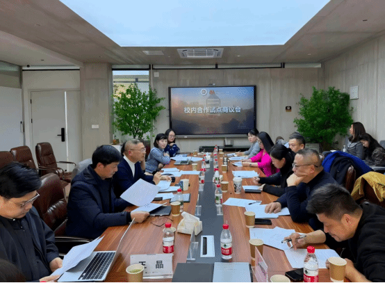 1月12日下午,校内合作试点商议会在艺术人文学院召开。艺术人文学院、造型艺术学院党政领导班子成员,美术馆、学报编辑部负责人参加会议。