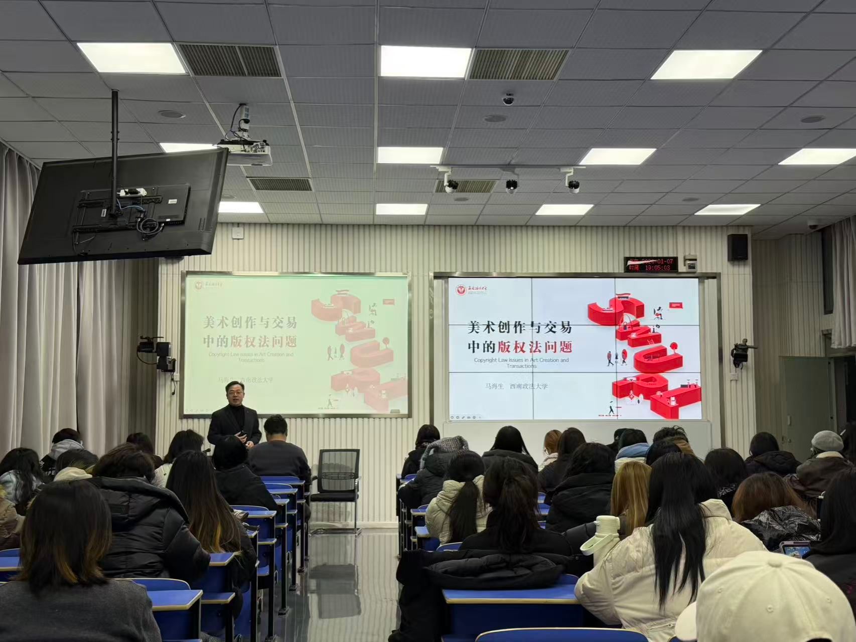 1月7日,西南政法大学副教授马海生老师应邀开展“美术创作与交易中的若干法律问题”专题讲座。他结合艺术行业实例,解析了作品原创性界定、著作权授权、侵权风险防范等关键内容,并就AI创作版权、素材使用等热点问题与同学们深入交流,增强了学生的法律意识与职业风险防范能力。