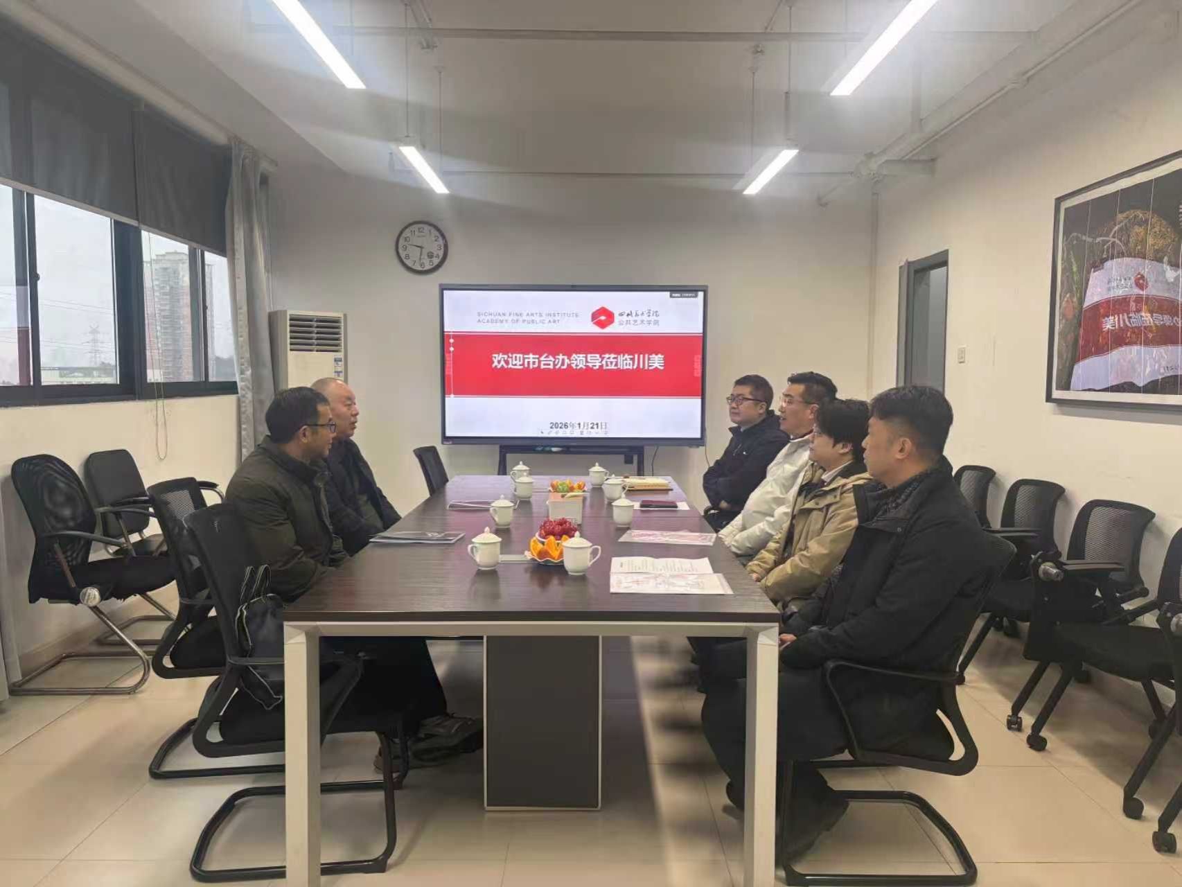 1月21日上午,重庆市台办交流处处长曾庆来、副处长方吉武一行到访我校黄桷坪校区开展慰问台籍教师活动,我校国际交流与合作处、公共艺术学院领导以及台籍教师董子瑗参加座谈。