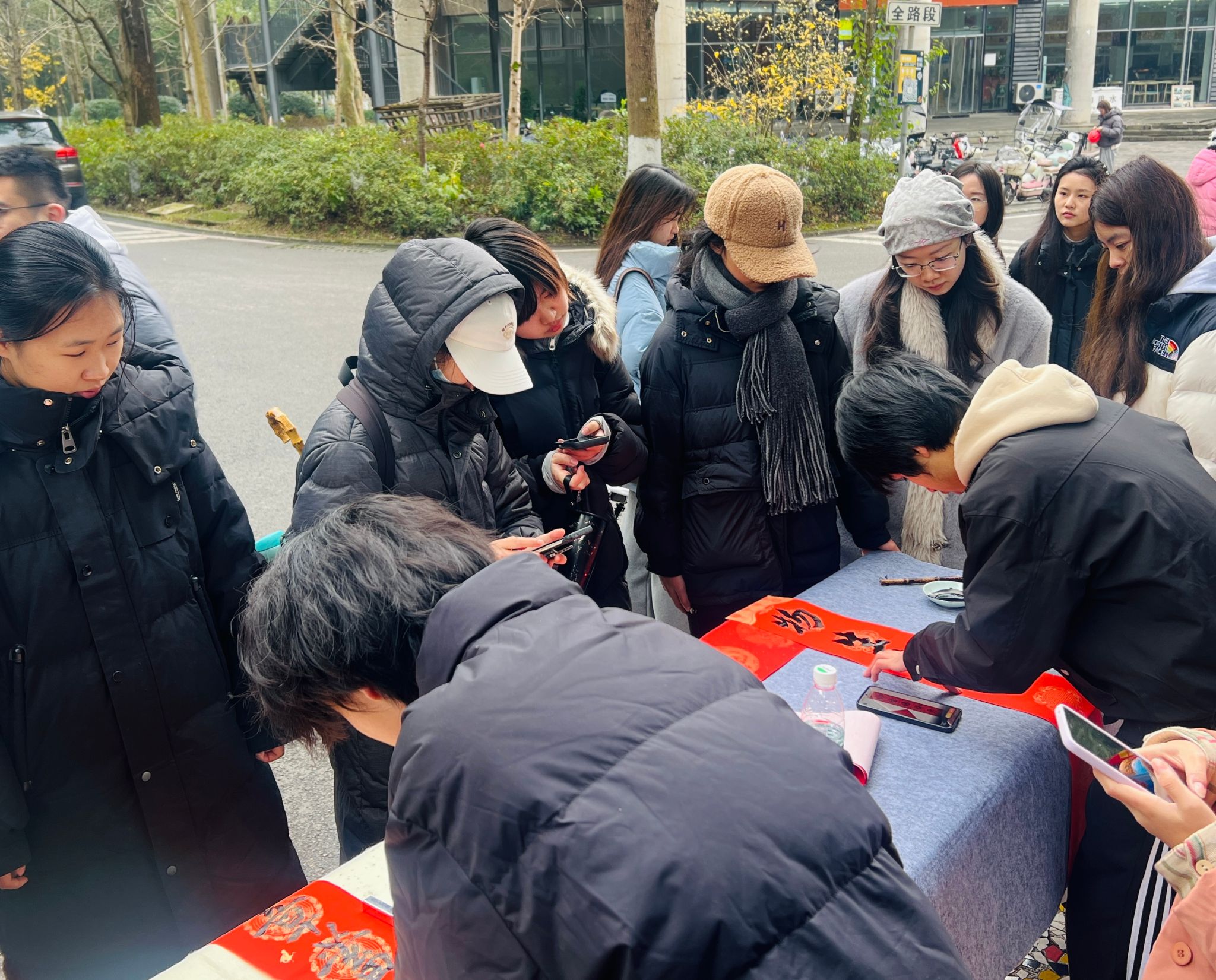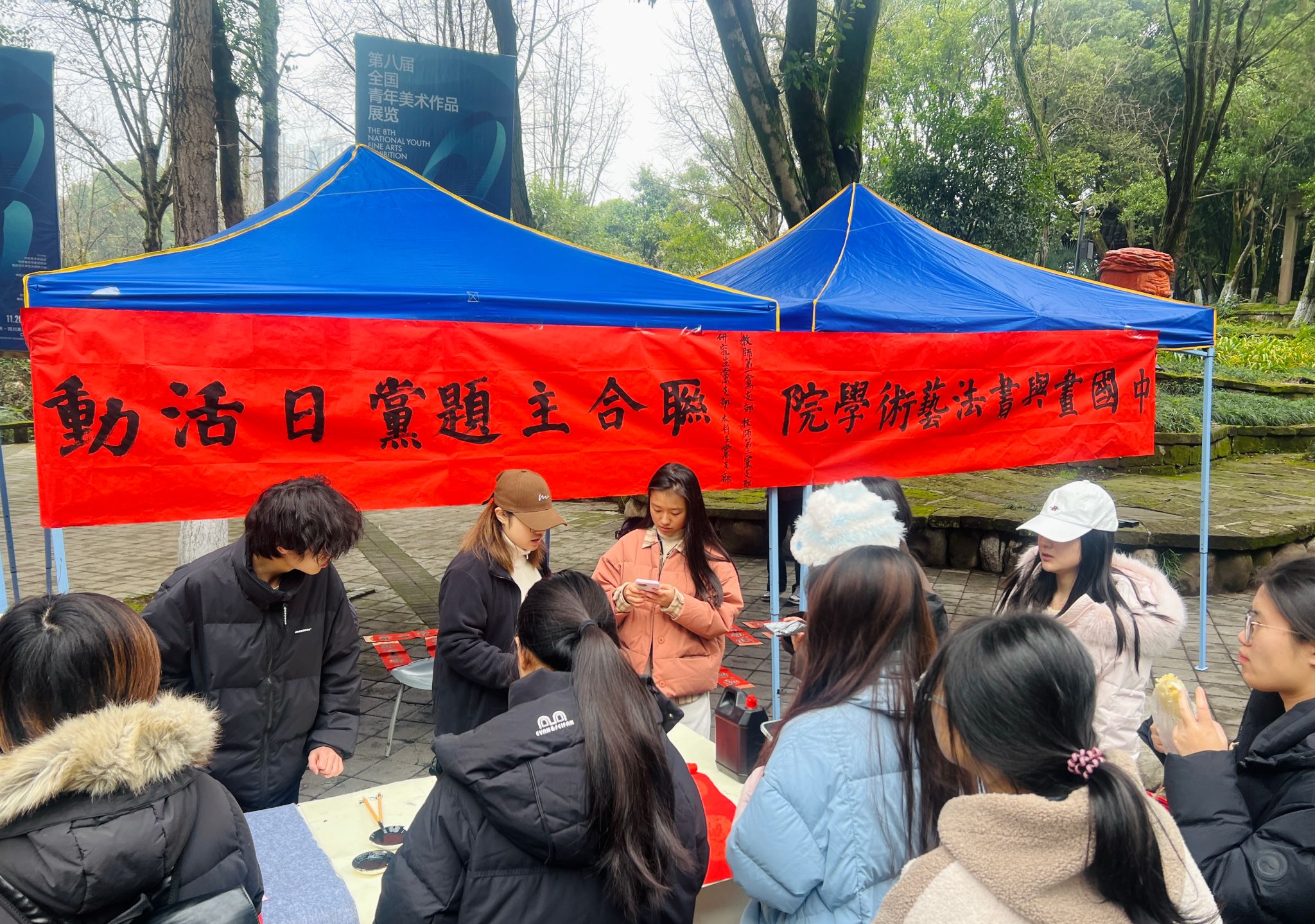 1月22日,学院师生党员、入党积极分子等在学校食堂门口开展“家国同心,花灯耀新春”联合主题党日活动。现场设置知识竞答环节,内容涵盖党的二十届四中全会精神、党史、校史等。书法专业的同学们还现场挥毫,为师生书写春联、送上祝福,现场红纸翻飞、翰墨飘香,一句句寓意吉祥的祝福跃然纸上,一笔一划都洋溢着浓浓的节日气息。