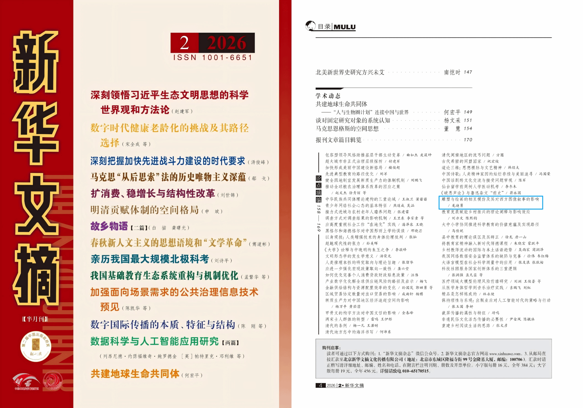 近日,我校学报《当代美术家》2025年第4期“聚焦前沿”栏目刊登论文《雕塑与绘画的相互模仿及其对西方图像叙事的影响》被《新华文摘》(2026年第2期)论点摘编。该文作者为龙迪勇,东南大学首席教授、二级教授、博士生导师,研究方向为叙事学、图像学。