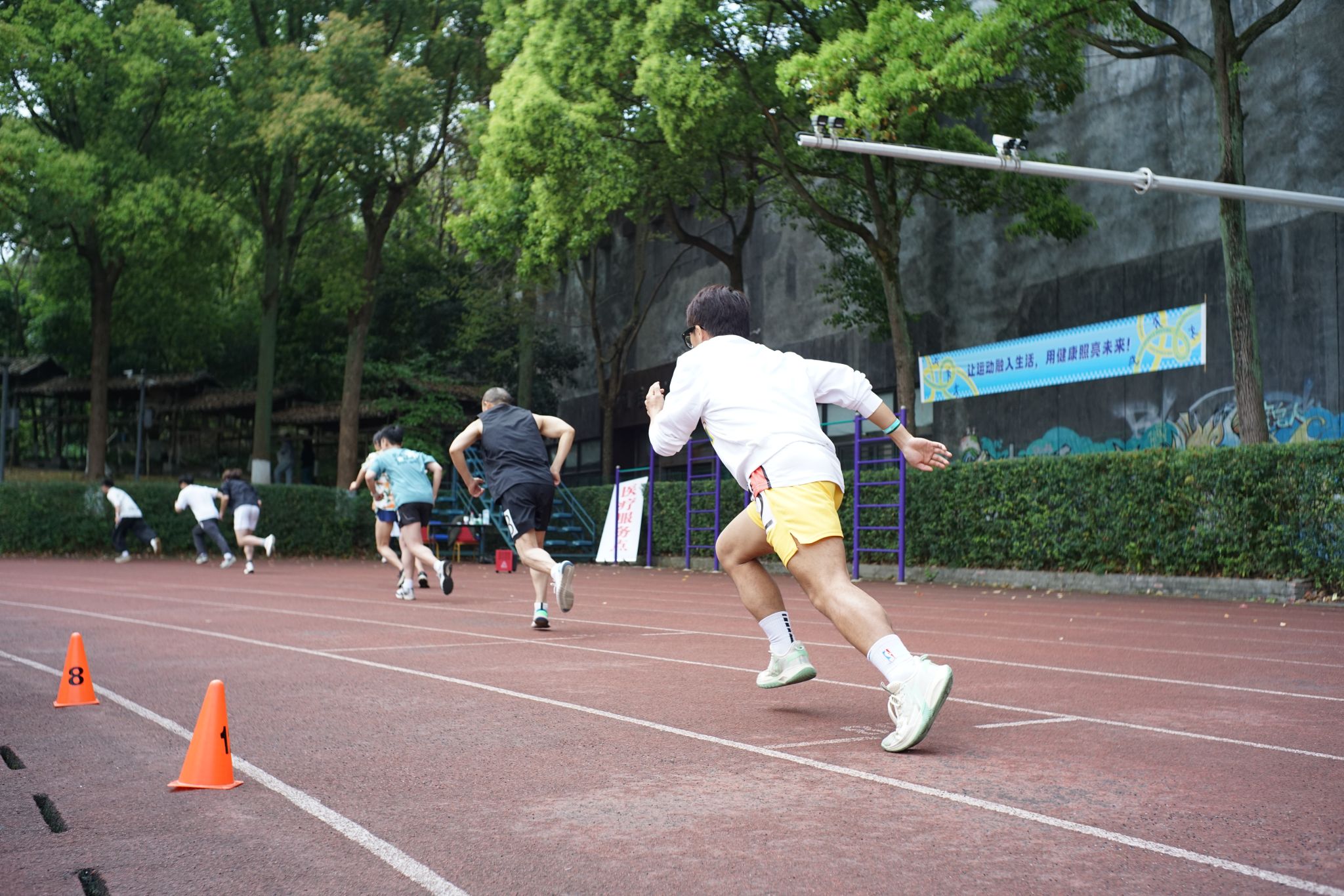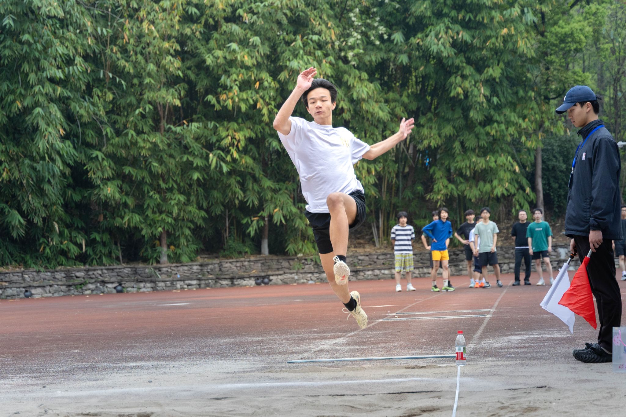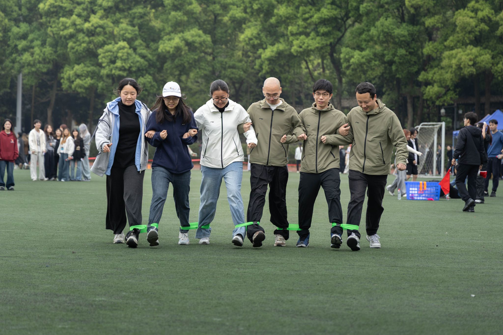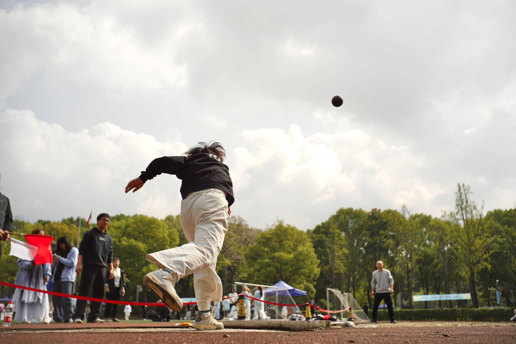 赛场上的精彩,同样离不开赛场之外的默默支撑。当运动健儿们成为全场的焦点,还有一群“幕后英雄”在默默守护着这一切。裁判员们目光如鹰,紧盯着每一个细节,掐准每一秒、丈量每一寸,用严谨与公正为赛事保驾护航。体育组的老师和工作人员贯穿赛前、赛中、赛后,事无巨细、全力保障,每一个环节都凝结着他们的坚守与付出。广播站的同学用激昂的嗓音,实时播报着赛况与来自各学院的加油稿,让热情的声音传遍每一个角落。摄影师们则扛着设备,或蹲或趴,穿梭于赛场各角落,只为捕捉运动员们最飒爽、最动人的那一瞬。随处可见的志愿者们维护秩序、引导路线、递送物资,用微笑与汗水筑起了最温暖的保障。赛场边的观众挥舞彩旗,为每一次坚持鼓掌,为每一次全力以赴喝彩,呐喊声此起彼伏。正是因为有了这些场外人员的辛勤付出与无声守护,这场关于青春与拼搏的盛会才得以更加圆满。