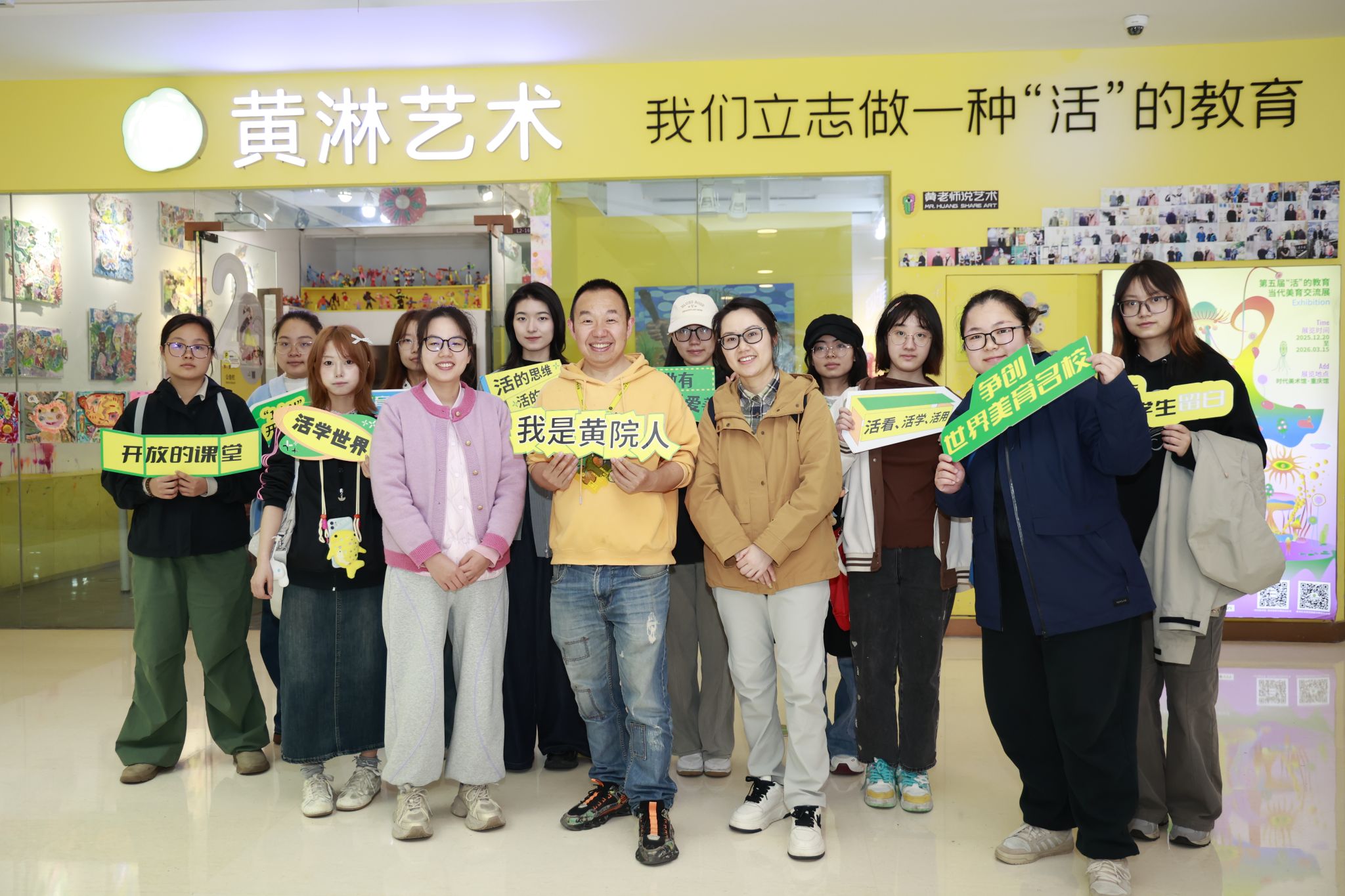 研究院创始人黄淋为我校校友,深耕当代美育与艺术教育领域多年。师生一行实地走访了研究院教学空间、创作展示区及美育实践阵地,深入了解机构办学理念、课程体系、岗位需求及艺术教育行业发展趋势。