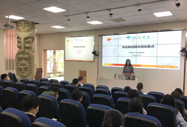 5月15日下午,九龙坡区人民医院院感办主任、主管护师程洪受邀来我校黄桷坪校区,为公共艺术学院教职员工进行了题为《学校新冠肺炎防控要点》的培训。公共艺术学院党政领导,全体行政人员,辅导员、班主任,以及保卫处、物业公司、食堂负责人参加了培训。