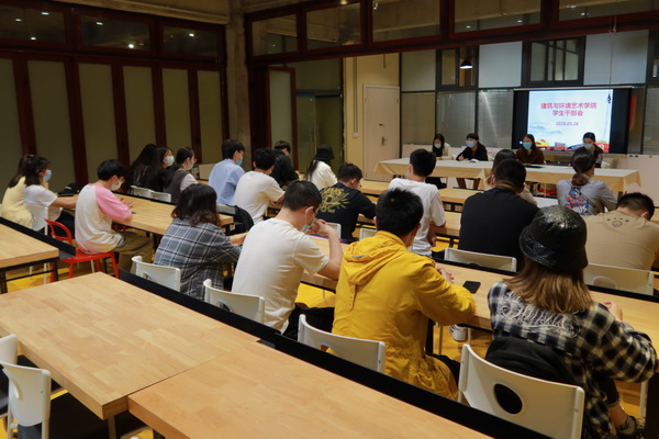 5月26日下午,建筑与环境艺术学院召开学生干部会,结合复课复学,就如何发挥学生会桥梁纽带作用进行专题研讨。学生会各工作部部长参加现场会议,各部部员参加线上会议。会议由学生会主席林科成主持。学院党总支书记聂玉红,团总支书记、辅导员蒋智丽参加了会议。