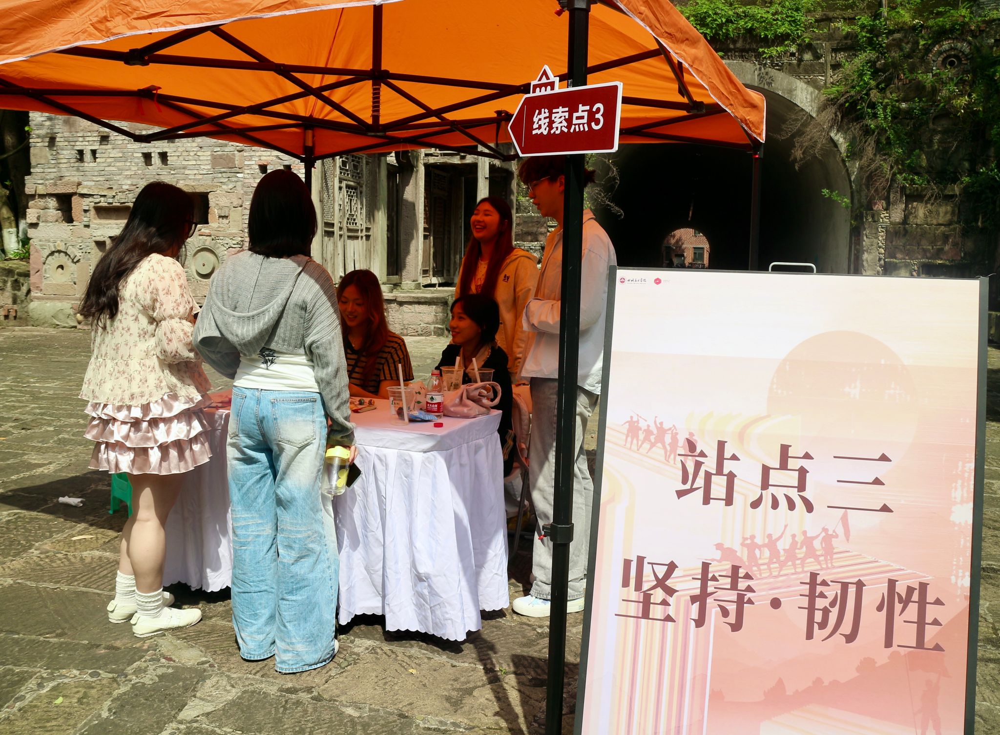 活动围绕“一本书、一条路、一场收获”展开,设置食堂、绘画楼、隧道、波浪路、断桥广场五大站点,分别对应信念、勇毅、韧性、协作、胜利的长征精神内涵。同学们手持线索卡,沿精心设计的“长征路线”参与党史及长征知识问答,在趣味互动中重温红色历史,在闯关打卡中体会坚持与拼搏。抵达终点后,参与者可领取定制纪念徽章,并通过抽奖获得《红星照耀中国》等红色书籍,一本本经典读物既是精神食粮,也象征着使命传承。