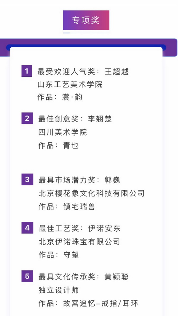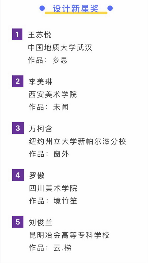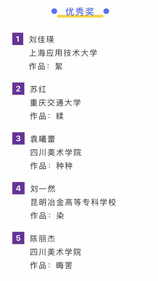 在评选阶段,大赛参赛院校150多家,报名人数2300余人,参赛作品2000余幅。经过层层选拔,评委现场的严谨评比,30余件凝聚设计师理念的作品获得奖项排名。其中,四川美术学院设计学院首饰工作室4位同学荣获奖项。我校有15名同学进入初赛全国300强、6名同学进入全国百强决赛,最终通过激烈的竞争,4名同学获奖。其中,罗傲作品《境竹笙》荣获“玉出云南”新锐设计师大赛设计新星奖、中国有IP珠宝设计大赛初赛前十强,袁曦蕾作品《种种》荣获“玉出云南”新锐设计师大赛优秀奖,陈丽杰作品《晦罟》荣获“玉出云南”新锐设计师大赛优秀奖,李翘楚作品《青也》荣获“玉出云南”新锐设计师大赛最佳创意奖。