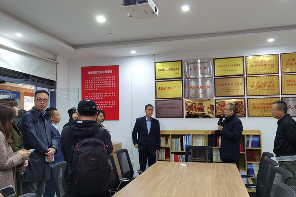 李川就实验艺术学院创立的科技与艺术研究院向考察团做了介绍。研究院主要在科技与艺术领域与社会各界展开合作,旨在促进科学研究成果向实践应用的转化,共同建立起以需求为导向、以创新为驱动的学术研究和人才培养平台。