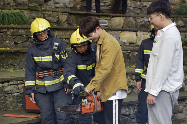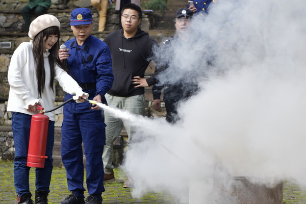 随后,消防指导员对演练进行了点评,并为同学们讲解了灭火器等常用消防器具的使用方法,让师生们现场体验了灭火器的使用方法。