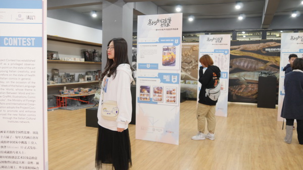 作为“第二十届意大利语言周:文字与图像中的意大利语——涂鸦、插画、漫画”单元展览活动之一,该展览集中展出了当代意大利青年漫画家的实践作品,此次展出的各类作品呈现了不同的艺术主题,类型包括科幻、冒险、体育、音乐等,从中能够洞察到青年漫画家创新理念和精湛的绘画艺术。该活动吸引了众多师生到现场观展,通过对漫画作品的观摩与欣赏,探讨这些艺术成果在世界艺术系统中所呈现出来的独特特质,理解不同的文化艺术背景孕育的作品差异,同时也加强师生对自身艺术创作的环视与思考。