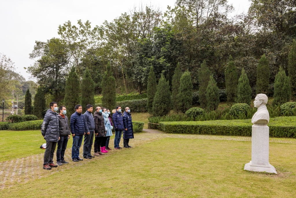 最后,同志们还凭吊了周贡植烈士墓。周贡植烈士于1928年4月3日在朝天门壮烈牺牲,后归葬于故居旁。全体同志在周贡植烈士墓前肃立、三鞠躬,并绕墓缓行一周,表达对革命先烈的深切敬仰和缅怀之情。