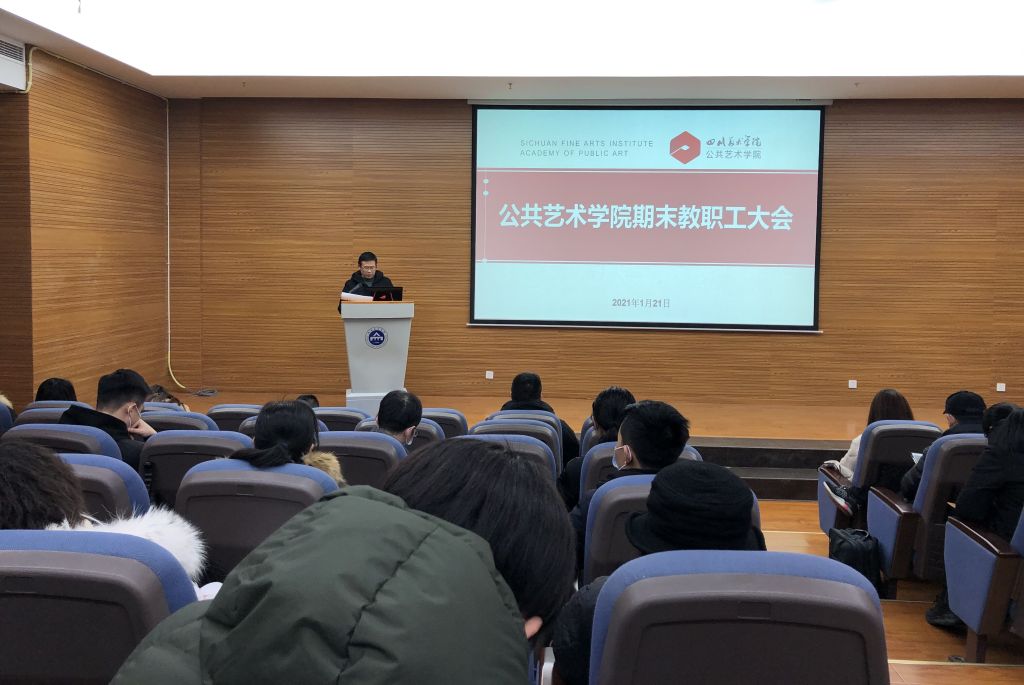 1月21日下午3点40分,公共艺术学院在黄桷坪校区学术报告厅召开期末全体教职工会议,对过去一年的工作进行回顾总结,对新的一年工作进行部署展望,承上启下、辞旧迎新。公共艺术学院全体教职员工和党政班子成员参加会议。会议由学院党总支书记雍朝永主持。