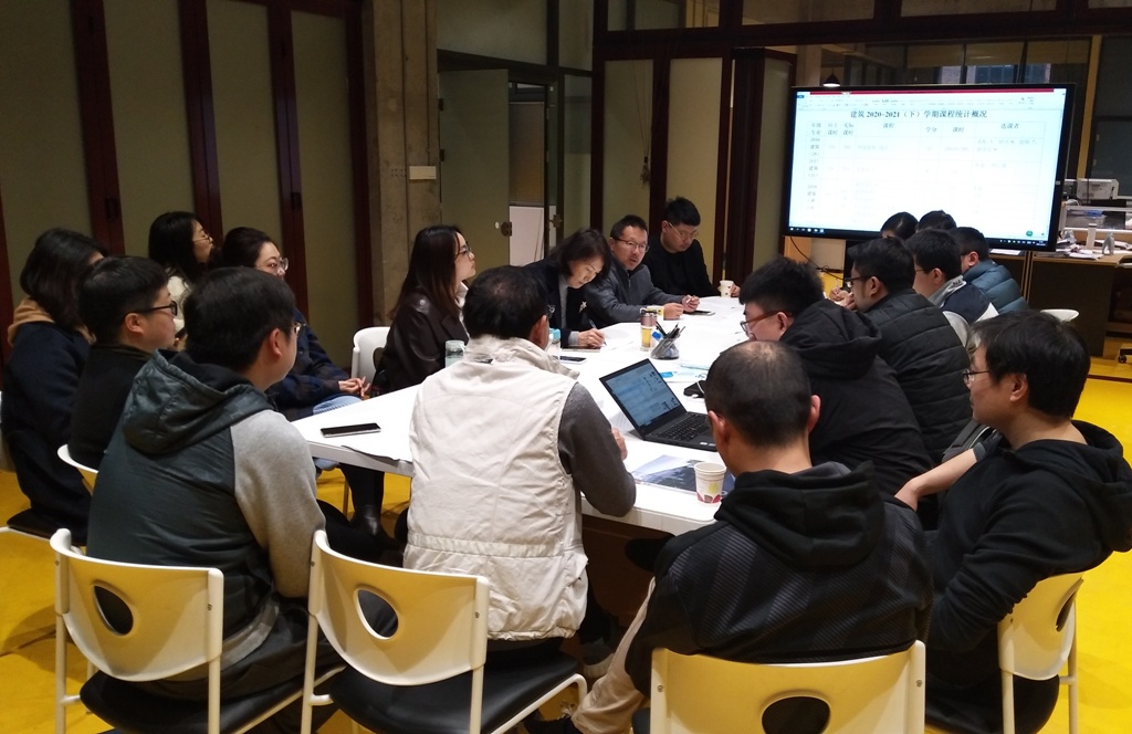 随后,新学期各个课程的任课教师对所任课程的课程目标、场地选址、课程环节、评价标准等方面进行了详细阐述,其他教师一起进行了检查和反复讨论,黄耘重点强调了培养学生的探索性、创新性,明确要以创新引领教学。
