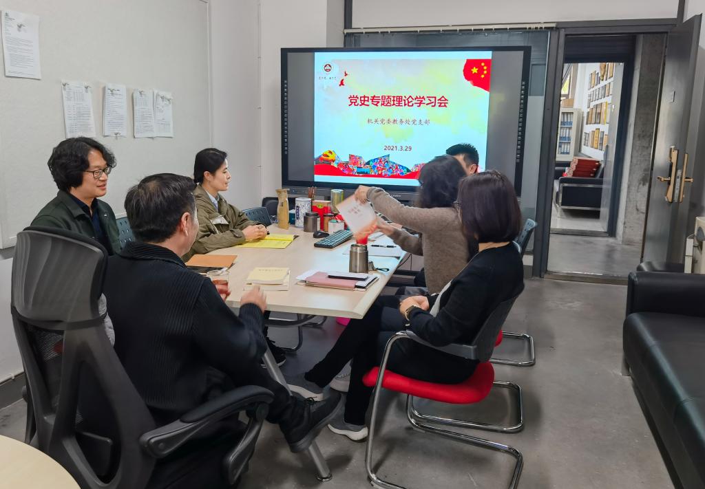 3月29日下午,机关党委教务处党支部召开党史理论专题学习会,学习习近平总书记在党史教育动员大会的重要讲话精神。会议由支部书记苏永刚同志主持。