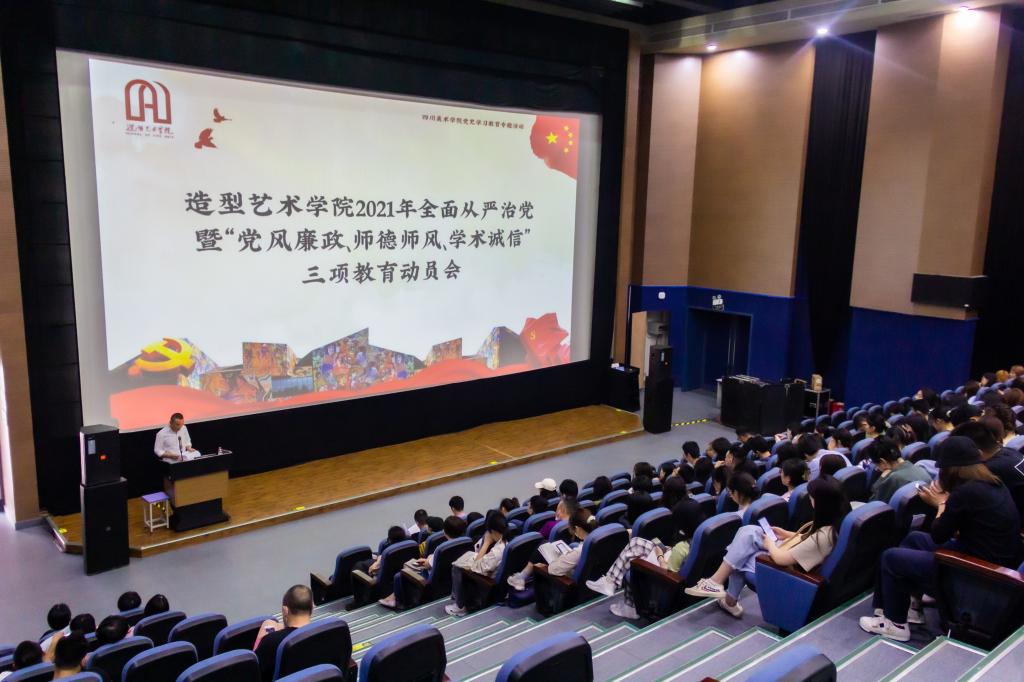 为不断深化“不忘初心、牢记使命”主题教育成效,推进“两学一做”学习教育常态化制度化,贯彻落实全面从严治党要求,以党风建设引领师风、学风建设,落实立德树人根本要求,5月14日下午,造型艺术学院在学校小剧场召开全面从严治党暨“党风廉政、师德师风、学术诚信”三项教育动员会。副院长焦兴涛出席会议,造型艺术学院全体领导、全体教师以及部分学生代表参加了动员会,会议由学院党总支书记王天祥主持。