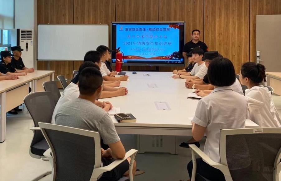 7月15日下午,为强化安全工作意识,确保美术场馆安全运作,保障美术馆日常消防安全,有效防范化解重大消防安全风险,贯彻消防安全责任制,确保暑假期间美术馆的安全稳定,美术馆在一楼会议室对馆内全体员工进行了消防安全培训。