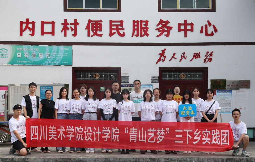 习近平总书记在庆祝中国共产党成立100周年大会上向中国青年寄予希望:“中国青年要以实现中华民族伟大复兴为己任,增强做中国人的志气、骨气、底气,不负时代,不负韶华,不负党和人民的殷切期望!”为深学笃用习近平新时代中国特色社会主义思想及习近平总书记对青年一代的期望,落实好上级关于开展2021年大中专学生志愿者暑期文化科技卫生“三下乡”社会实践活动的精神,引导学生以实际行动参与乡村振兴伟大事业,在社会实践中受教育、长才干、作贡献,四川美术学院设计学院党总支组建暑期“三下乡”乡村振兴实践团——“青山艺梦”团,走进重庆市酉阳县两罾乡内口村开展暑期实践活动。