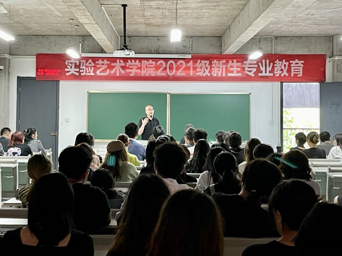 9月30日上午9点,实验艺术学院在ZB302召开2021级新生专业教育会。实验艺术学院党总支书记郑川、院长李川及系主任、各教研室主任、教师代表、学生代表和教学秘书参加了会议。2021级新生专业教育包含专业带头人讲专业、专业方向专题宣讲和教师代表、学生代表分享三个部分。