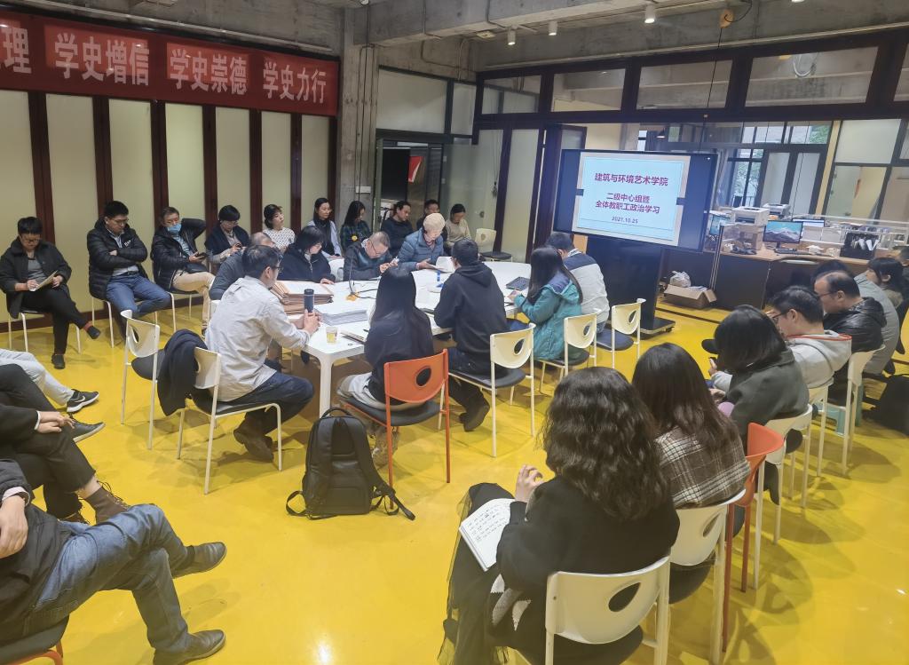10月25日下午,建筑与环境艺术学院召开二级中心组(扩大)学习暨教职工政治学习会议。会议以“用好红色资源,赓续红色血脉,努力创造无愧于历史和人民的新业绩”为主题。学院党总支书记聂玉红、院长黄耘、副院长黄红春,党总支委员,各系主任,全体辅导员参加会议。会议由聂玉红主持。学校宣传部部长贾安东列席旁听会议。