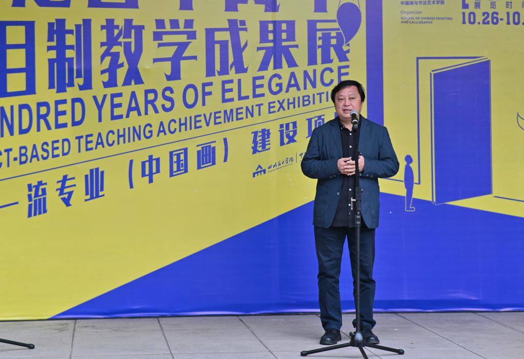 为进一步落实国家一流专业建设要求,10月26日下午,中国画与书法艺术学院“恰是百年芳华”项目制教学成果展顺利开幕。重庆市美术家协会副主席、重庆市美术馆副馆长邓建强,人民日报数字传播重庆融媒体中心主任邓三忠,我校实验艺术学院、艺术人文学院、中国画与书法艺术学院党政领导以及全体教师参加了开幕式,开幕式由中国画与书法艺术学院党总支书记王劲主持。